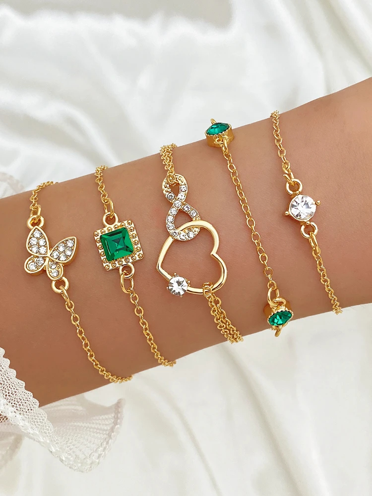Bohemian 5pc Green Crystal Bracelets Jewelry Set For Women