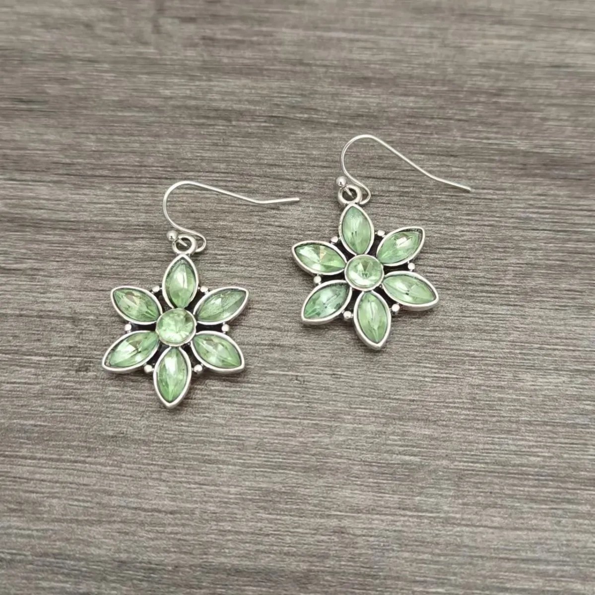 Bohemian Fengfeng Green Crystal Flower Pendant Earrings