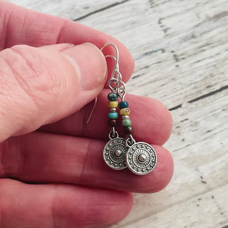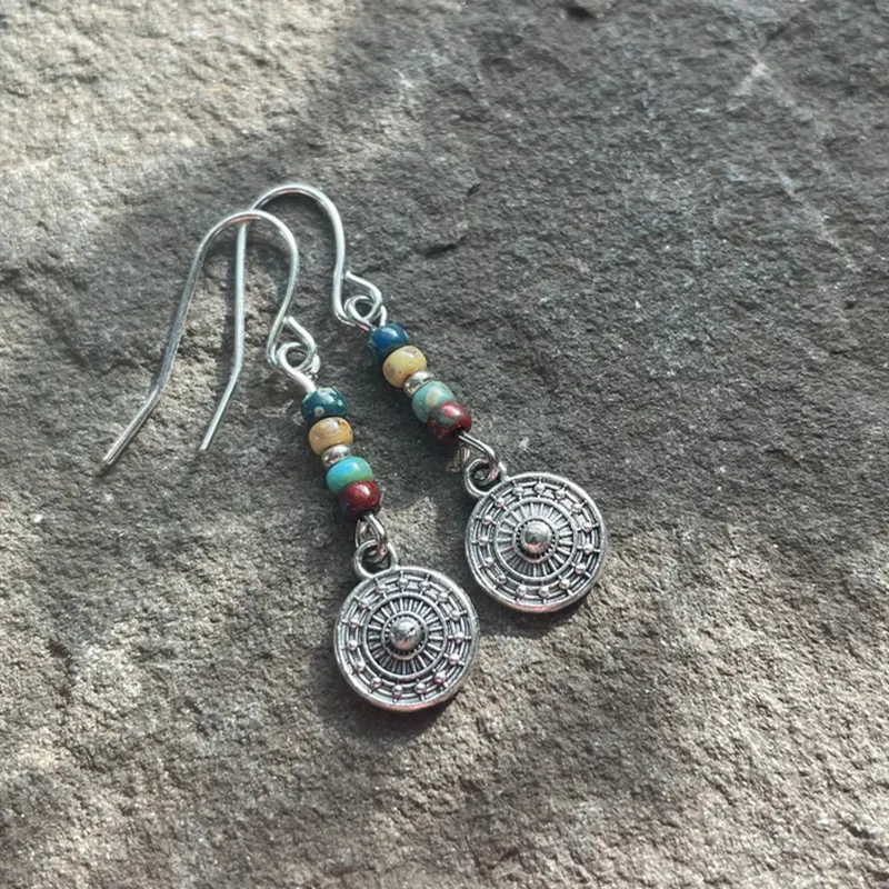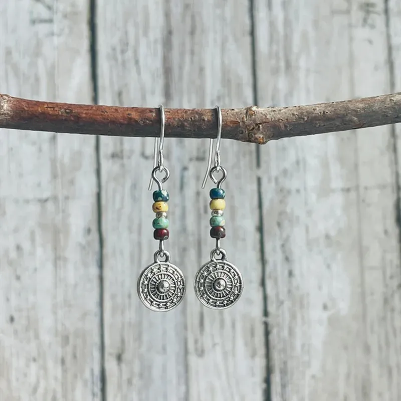 Bohemian Round Beaded Pendant Earrings Vintage