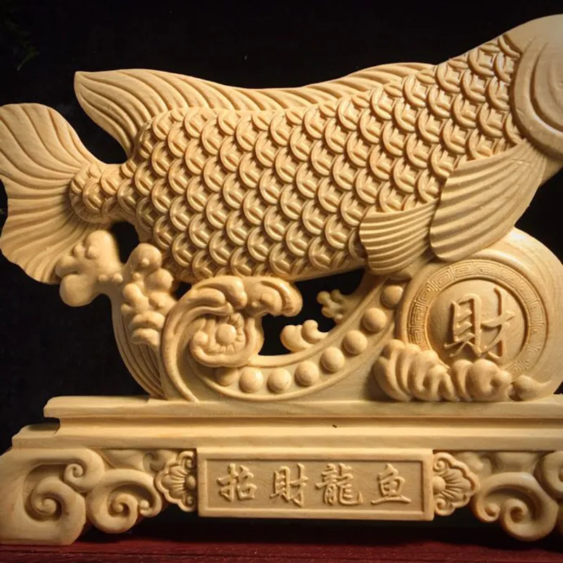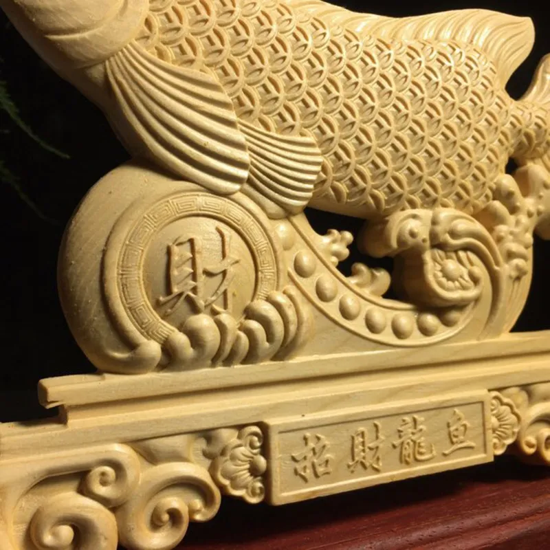 Boxwood Finely Carved Lucky Dragon Fish Ornament: Elegance and Prosperity for Your Desk