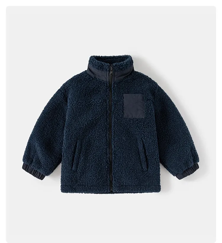 Boys' Thickening Coat – Fleece Stand Collar Stitching for Ultimate Warmth and Style