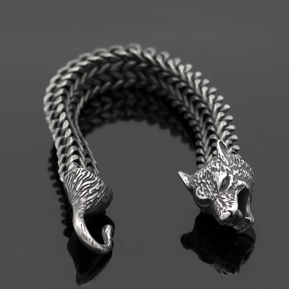 Bracelet Men Stainless Steel Vintage Black Wolf Head Cuban Chain Hand Wristband: Bold and Masculine Fashion Statement