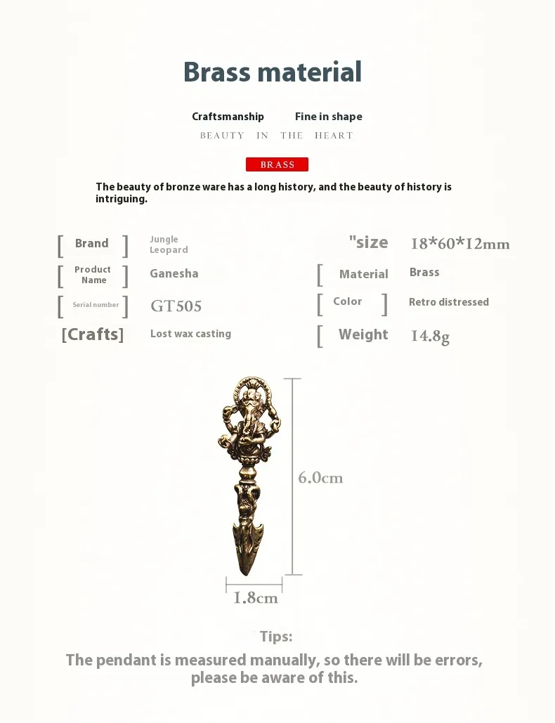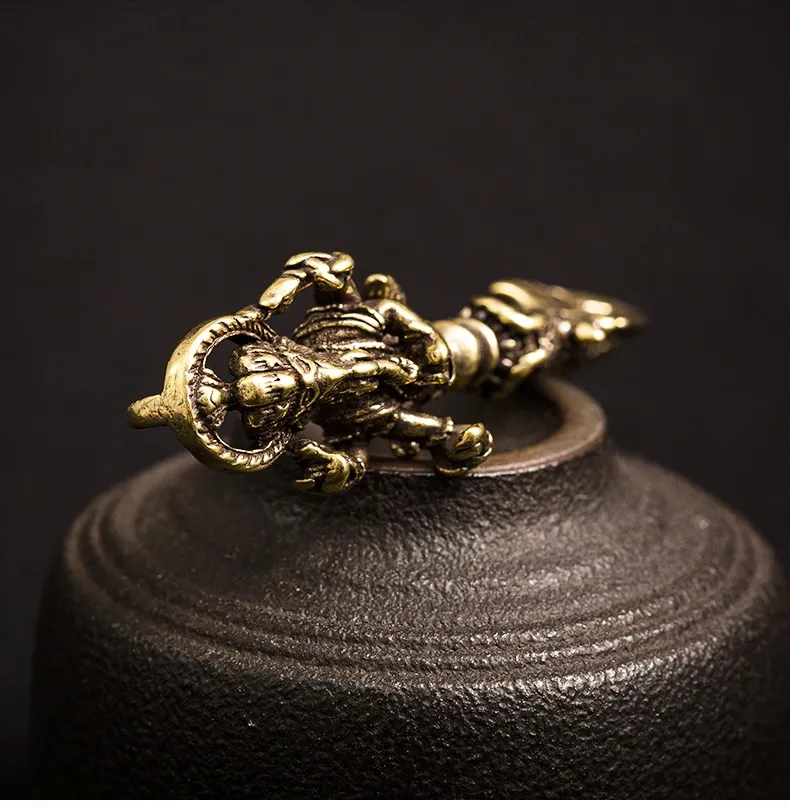 Brass Elephant God King Kong Tibetan Tantra Dharma-vessel Monster Subduing Club Vajra Keychain