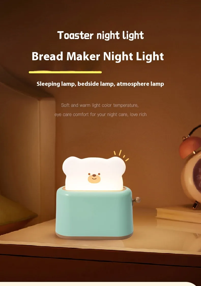 Add a fun and cozy vibe to your space with the Bread Bear Lamp Desktop Decoration Bedroom Night Light. This adorable night light features a unique design, combining a cute bear character with a playful bread shape, making it a perfect decorative piece for any room. Ideal for bedrooms, children's rooms, or even as a quirky desktop decoration, this lamp creates a warm, inviting atmosphere with its soft and soothing glow.