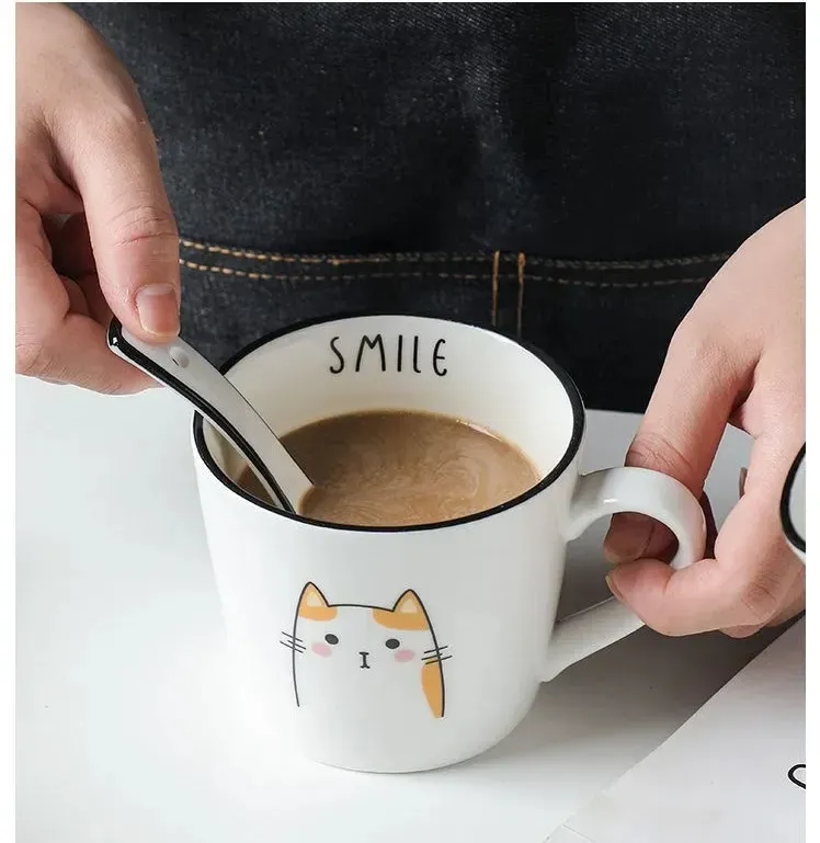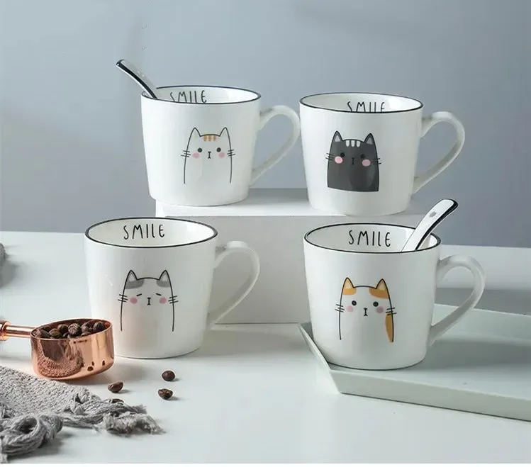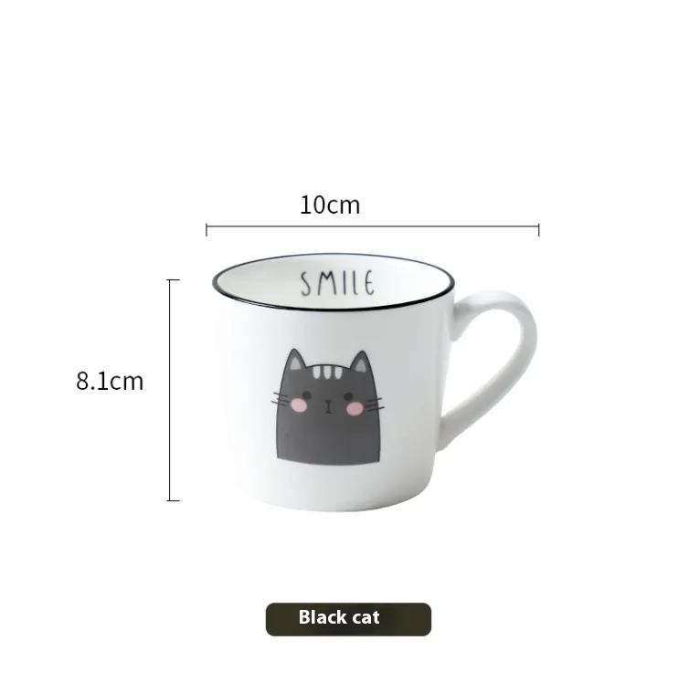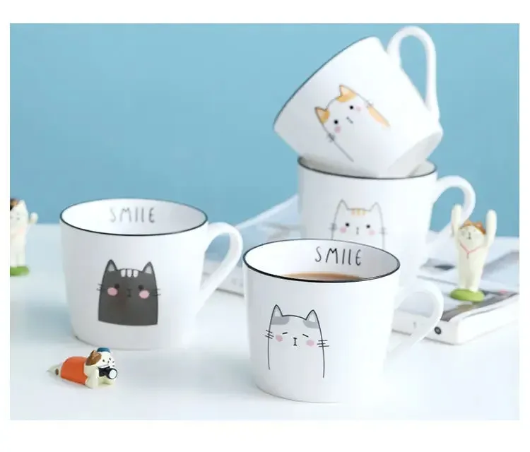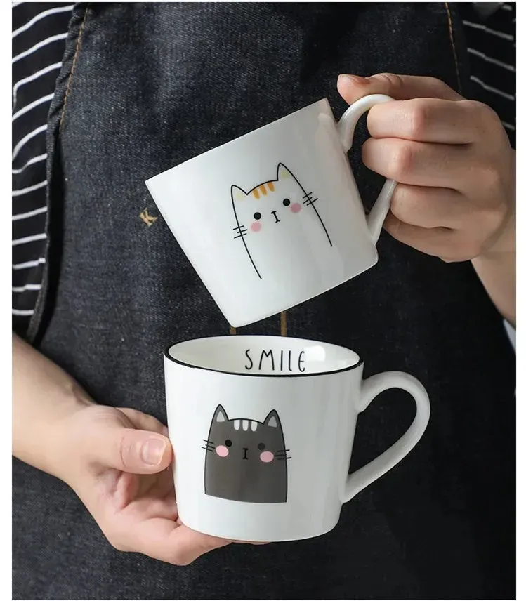 Breakfast Ceramic Milk Coffee Cup Couple Personality Creative Coffee Cup Cartoon Cat Pattern Kitchen Gadgets