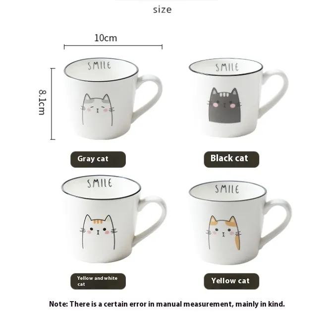 The Breakfast Ceramic Milk Coffee Cup is the perfect way to enjoy your morning coffee, milk, or tea in style. With its charming cartoon cat pattern and playful design, this cup brings a fun and personal touch to your breakfast routine. Ideal for couples or anyone who loves a bit of whimsy in their kitchen, this creative coffee cup adds a touch of joy to your daily rituals.