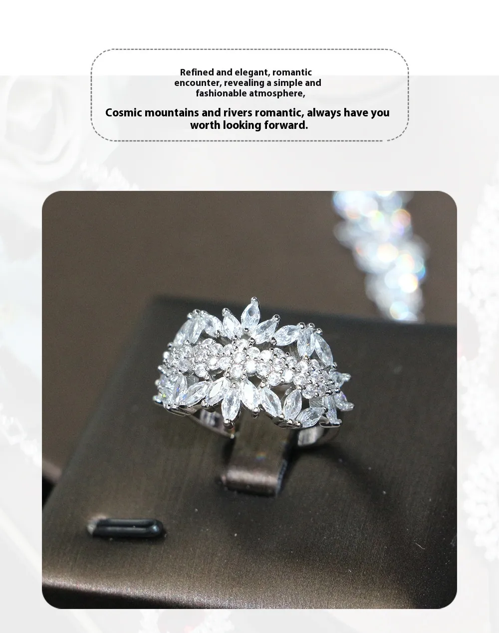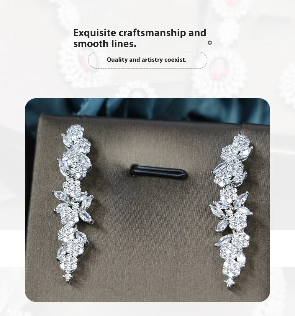 Bridal Wedding Dinner Jewelry Suit Fashion Rose Zircon Necklace Earrings Four-piece Set