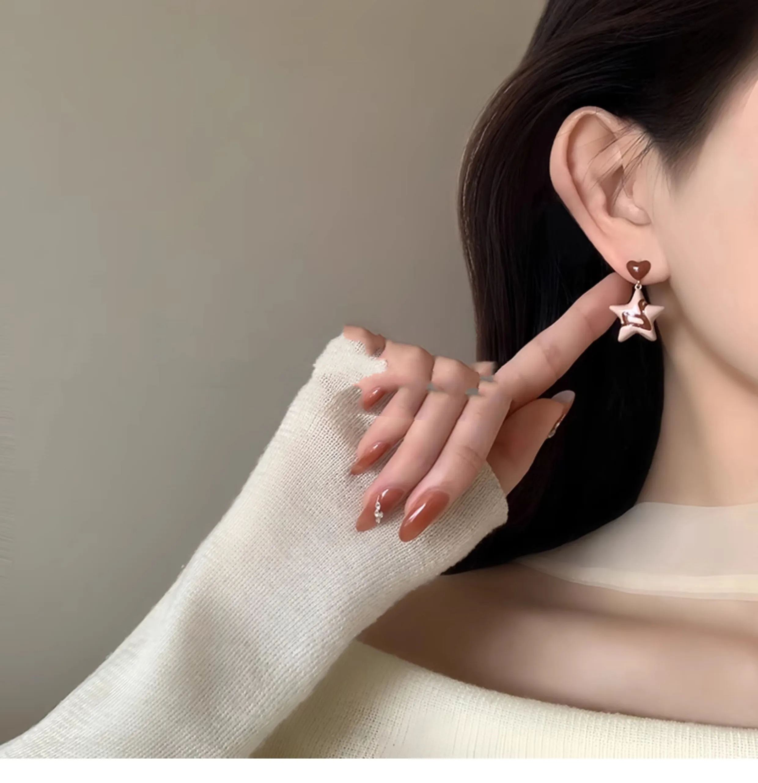 Brown Five-pointed Star Temperament Unique Earrings