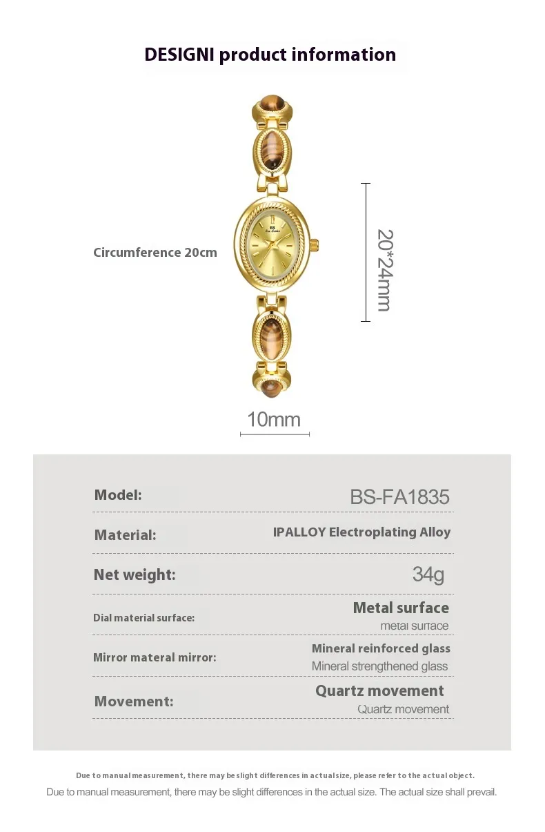 The sophisticated design of the BS Gold Retro Rich Tigereye Chain Watch elevates your look, making it perfect for formal events, casual outings, or everyday wear.
