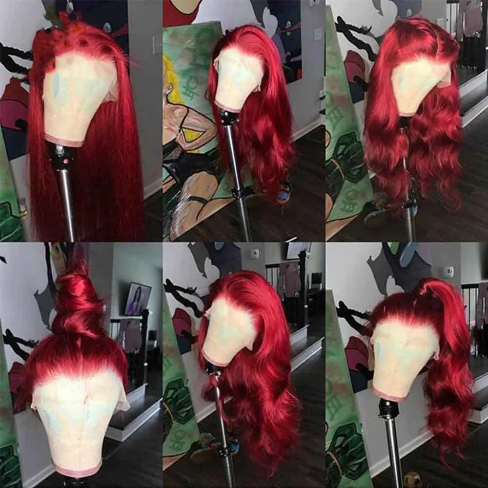 Burgundy Lace Front Human Hair Wigs Red Human Hair Wig