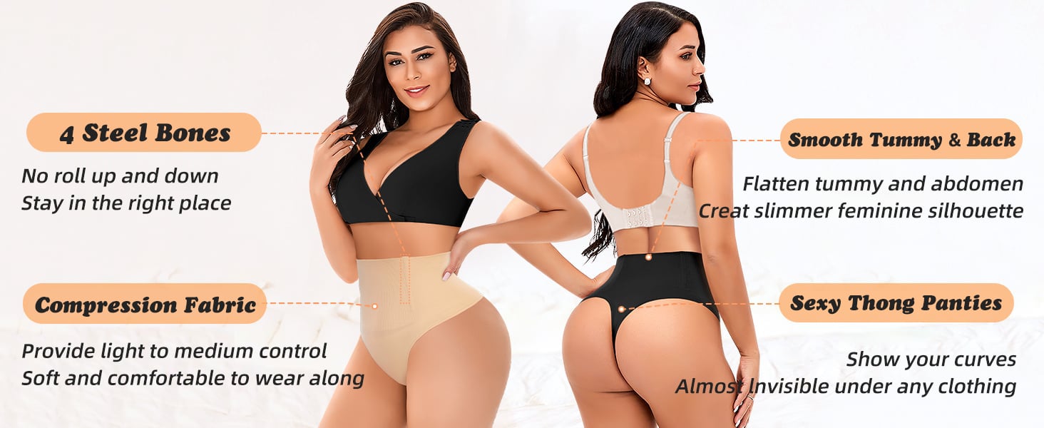 【Do Not Roll Down】: our GiftTree NZ™ tummy thong has 4 built-in spiral steel bones to provide support to your midsection and back, helping to relieve back pain and improve posture. YUMESILM™ tummy thong stays in place, without rolling up or slipping.