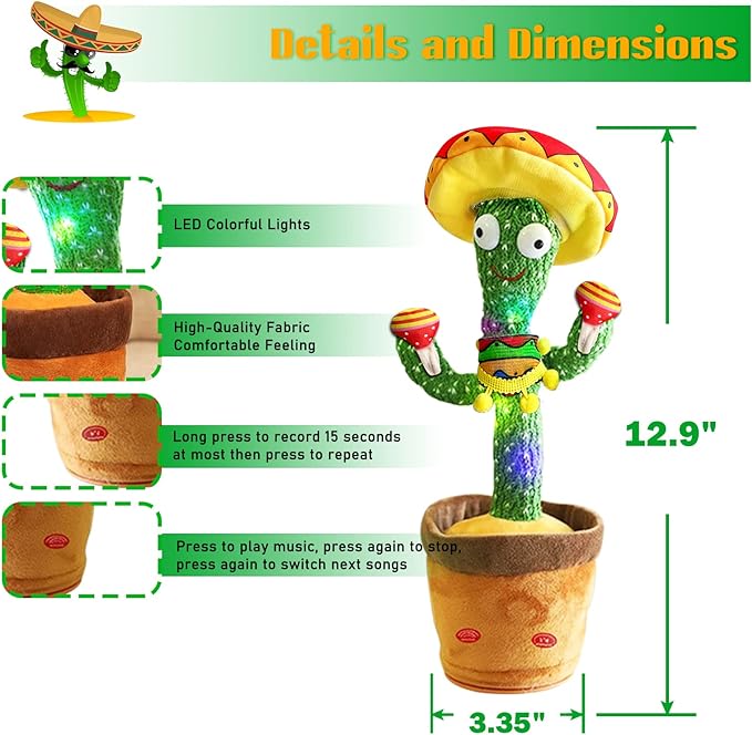 As a caring parent, you strive to give your baby the best, and this extraordinary Talking & Dancing Cactus Doll