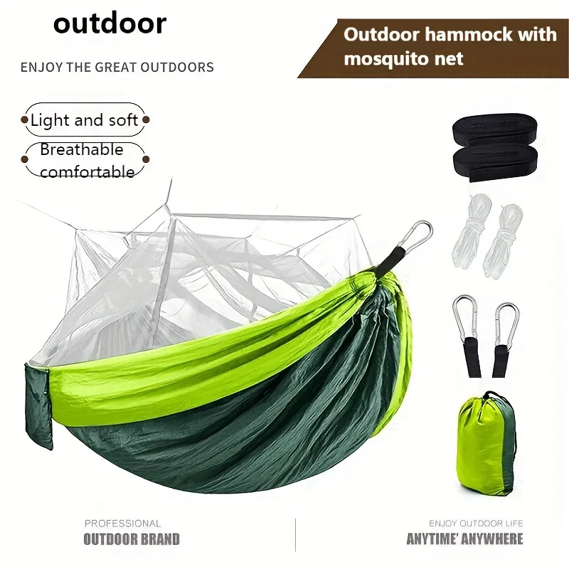 Whether you’re exploring trails, camping in the forest, or relaxing on a beach, the Double Camping Hammock with Mosquito Net is versatile enough for all types of outdoor activities. Its lightweight and compact design make it easy to bring along on any adventure, while the mosquito net and durable fabric provide a comfortable place to sleep. This hammock is ideal for travelers and nature lovers who appreciate comfort, protection, and convenience in their outdoor gear.