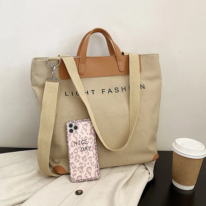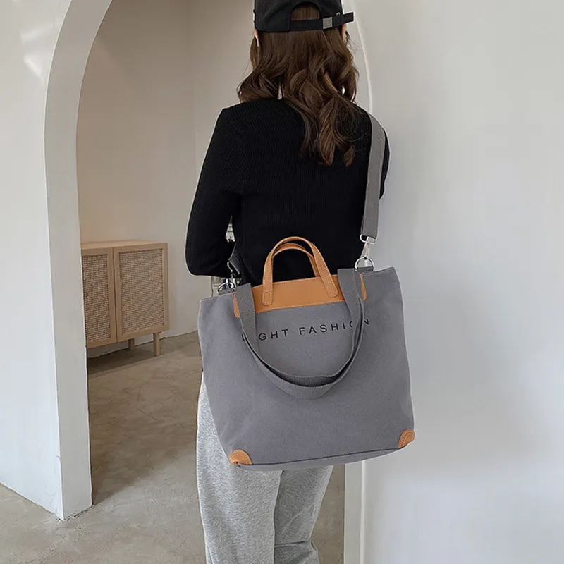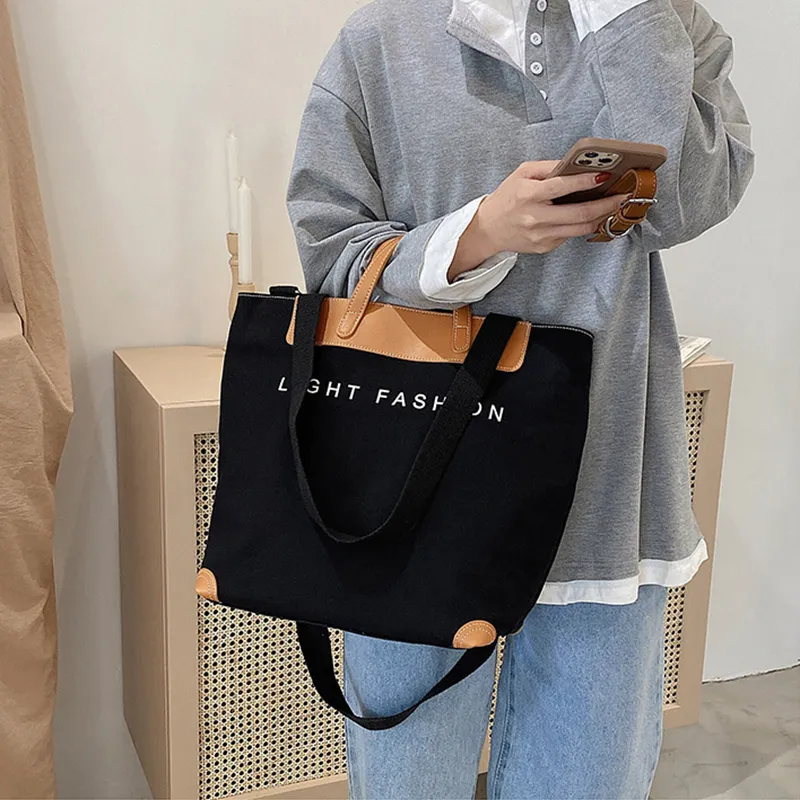 Canvas Shoulder Bag Women Ins Fashion Messenger Crossbody Bags Large Capacity Totes Handbag