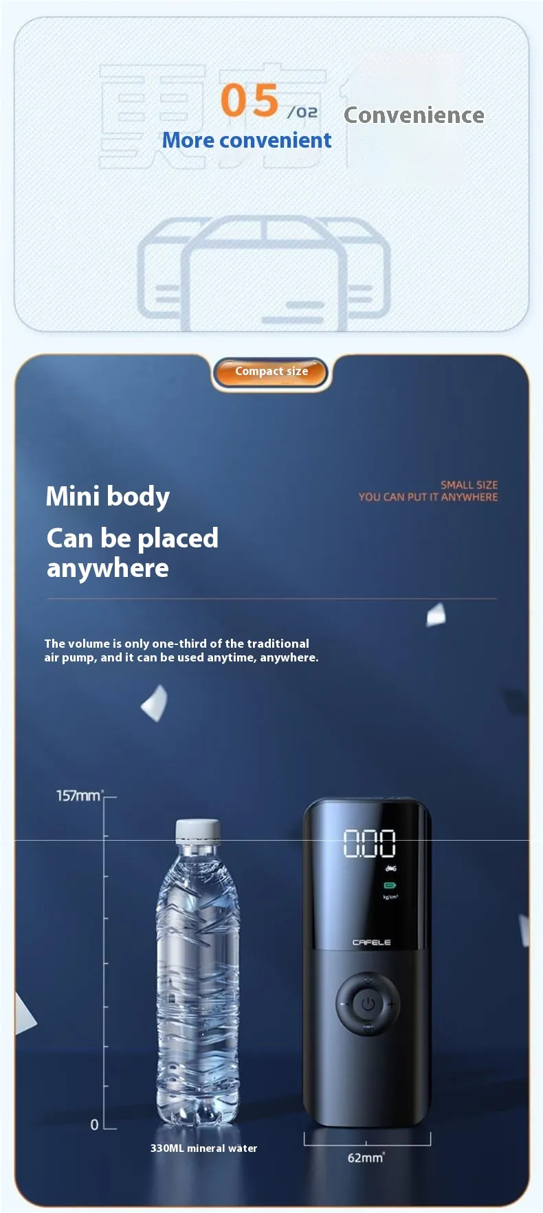 The Car Inflatable Wireless High Power is compact and lightweight, making it easy to store in your vehicle or carry around wherever you need it. Its durable construction ensures long-lasting use, so you can rely on it for years to come. The user-friendly design features intuitive controls, allowing for effortless operation, even for first-time users. Simply select the appropriate mode for tires or other inflatables, and the device will handle the rest.