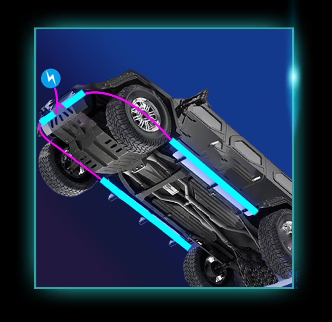 EASY INSTALLATION - Equipped with four LED bars, the under car light covers all four sides of your car's underbody to keep it fully illuminated. All that you have to do to install the car underglow is to wipe down your car's underbody, stick the LED lights on a dry place, and connect all the cables together.