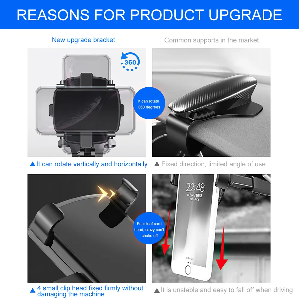 1. Lightweight design, suitable for 3-7 inch cellphones, can be installed on the dashboard, rearview mirror and sun visor (tips: this