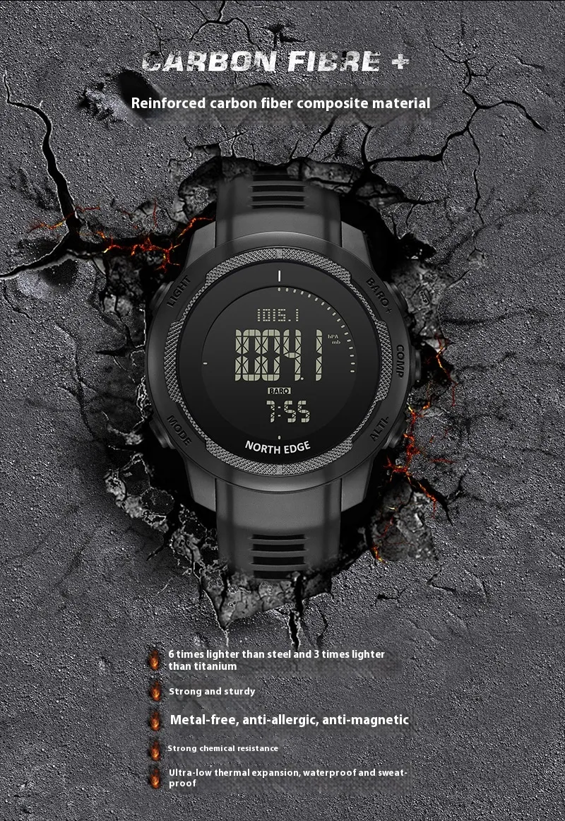 From rugged mountain trails to the unpredictable coastal weather, the Carbon Fiber Outdoor Sports Watch is designed to handle it all. Its robust materials and advanced technology ensure reliability in even the harshest conditions.