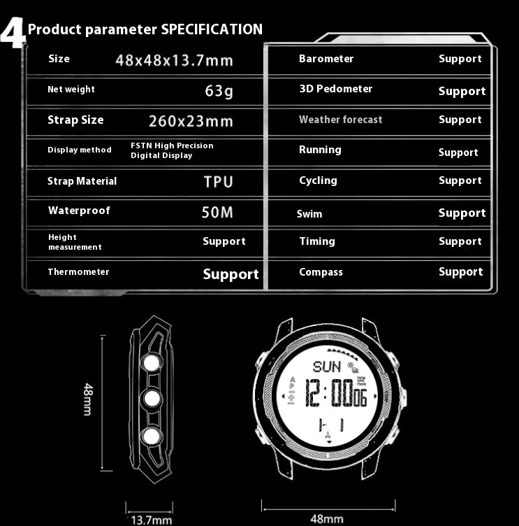 The Carbon Fiber Outdoor Sports Watch isn’t just for adventure—it’s also your fitness partner. It monitors essential metrics to help you stay active and healthy, whether you’re hiking trails or swimming laps.