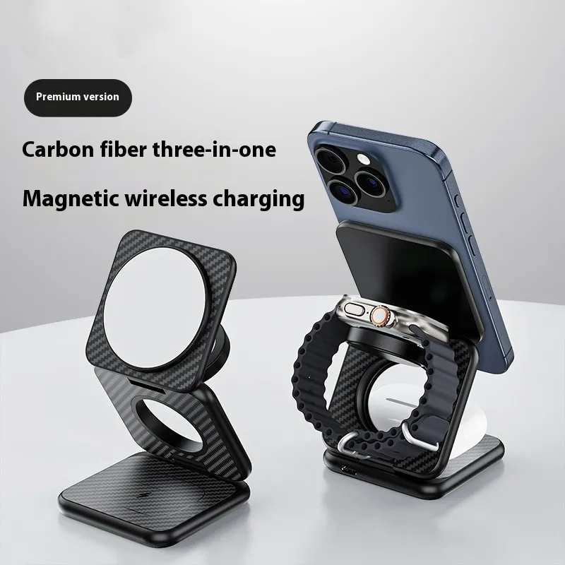 Carbon Fiber Three-in-one Magnetic Wireless Charger