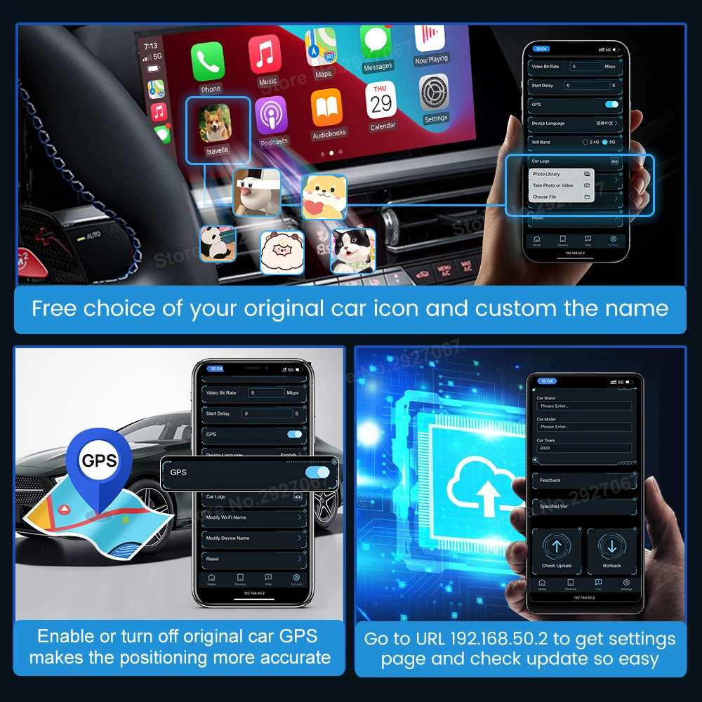 1.You can choose a nice image as your car logo in carplay or Android Auto home page, and custom the name of the image.
