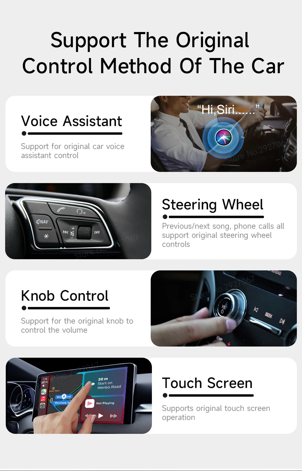 The A2A Adapter keeps all features of Android Auto like a wired connection such as original car dashboard and HUD head-up display, compatible with the original car microphone, continue the original car sound quality, steering wheel, button, knob and other operation methods of your original car.