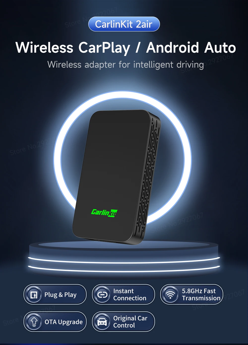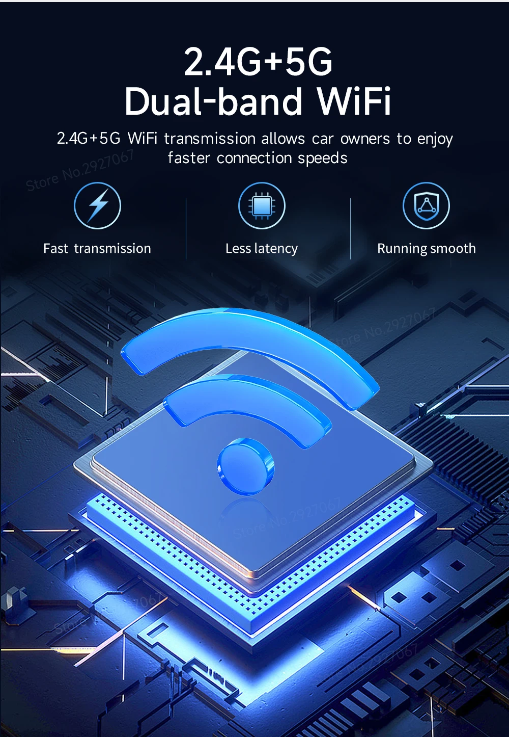 5.8GHz transmission rate, fast data transmission speed and low latency makes it simple for users to connect to existing USB-enabled Android Auto or Apple CarPlay vehicles wirelessly, making it even easier to access apps using the car's display.