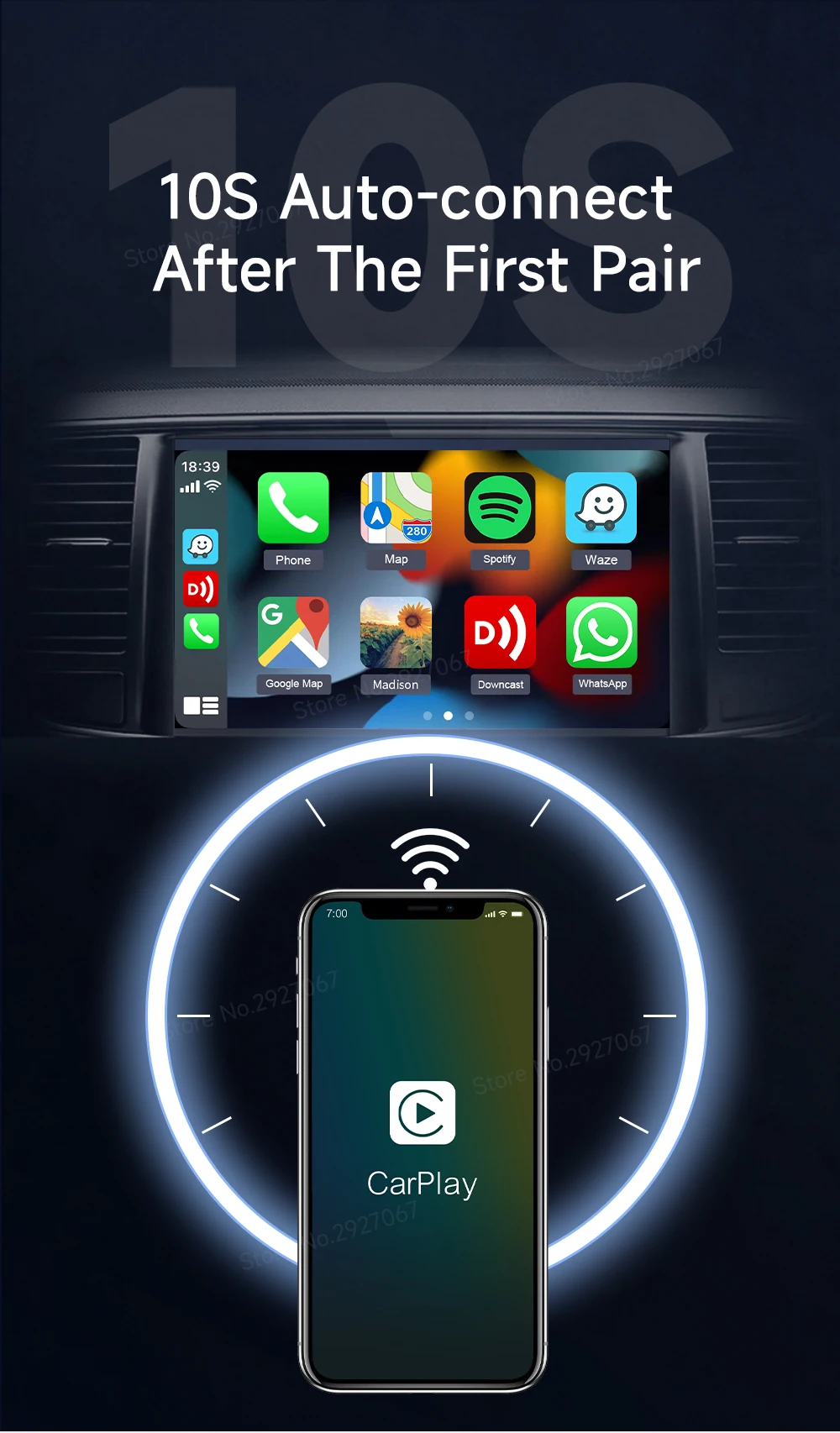 Say goodbye to cable CarPlay or Android auto, use your mobile phone in the car in a safer, simpler way.
