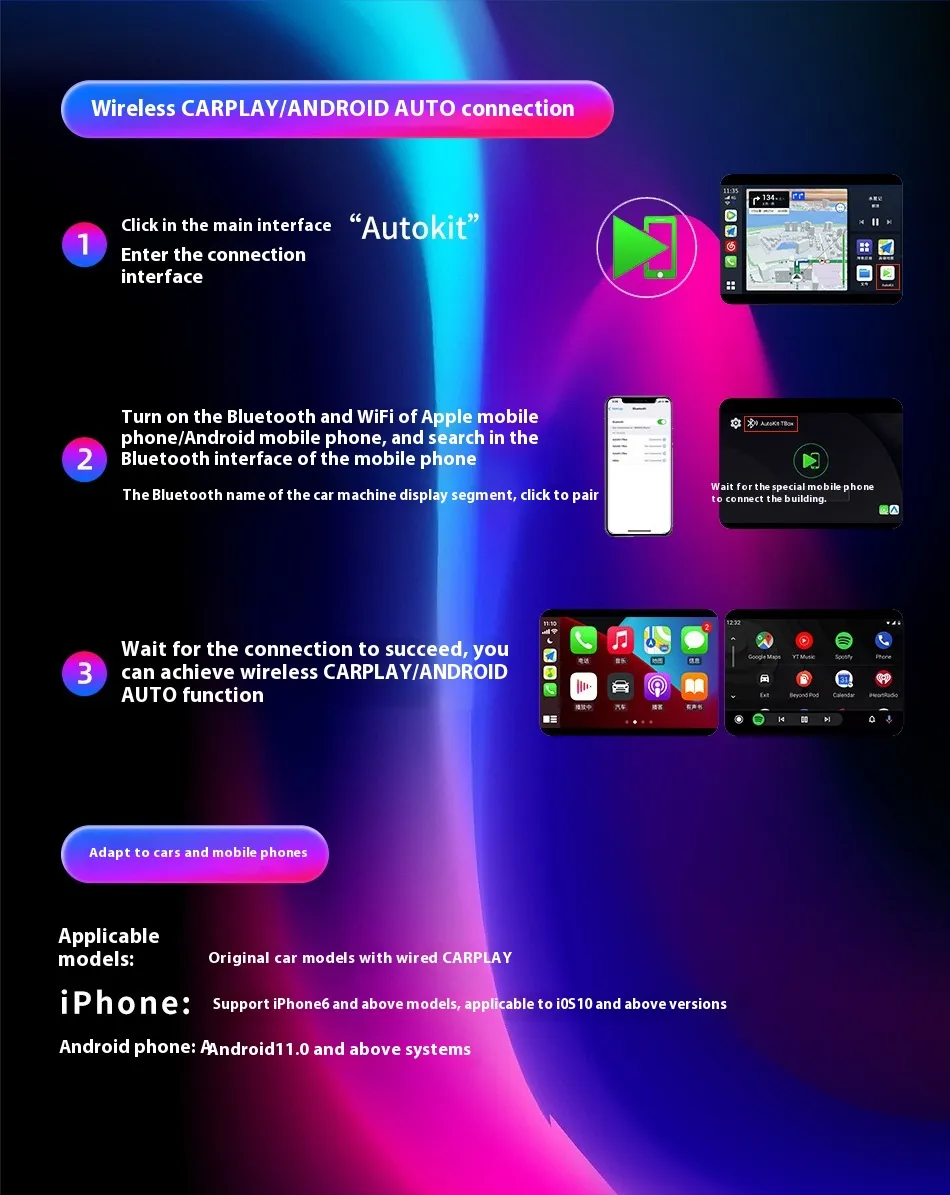 Purpose: Built-in open Android 13.0 system/wired to wireless carplay/androidauto