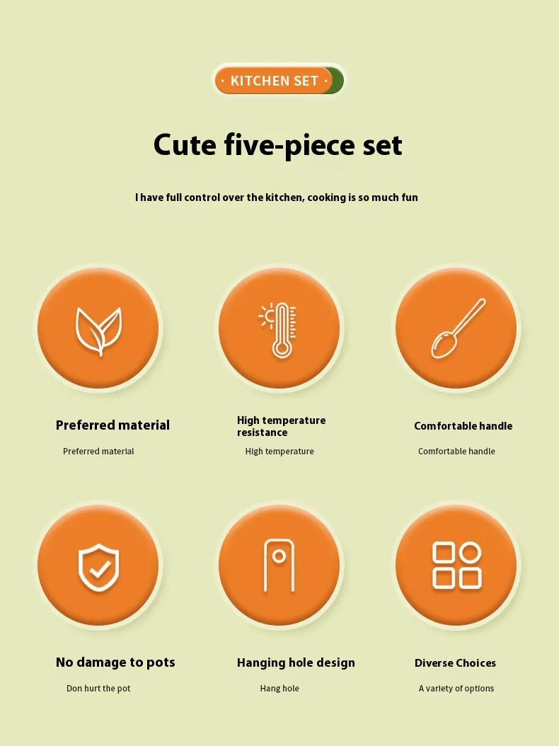 The Carrot Kitchen Tools Suit with Storage Hook is designed for home cooks who appreciate both functionality and organization. This complete set includes essential kitchen tools specifically crafted for preparing vegetables, particularly carrots, while the included storage hook ensures easy access and neat storage.