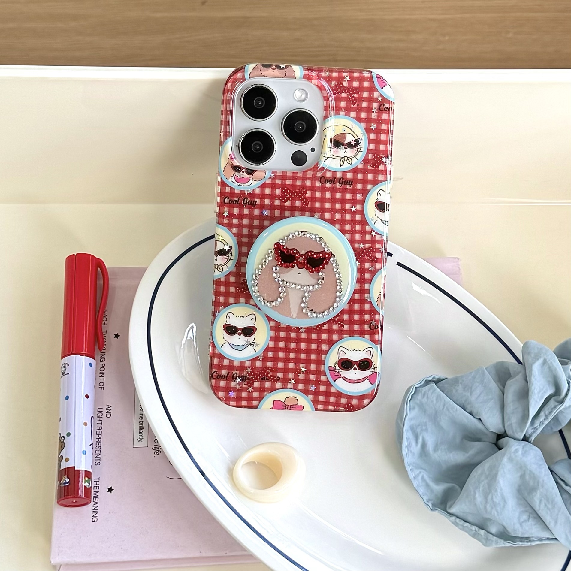 Cartoon Glasses Puppy Spot Drill Phone Case Holder Sets