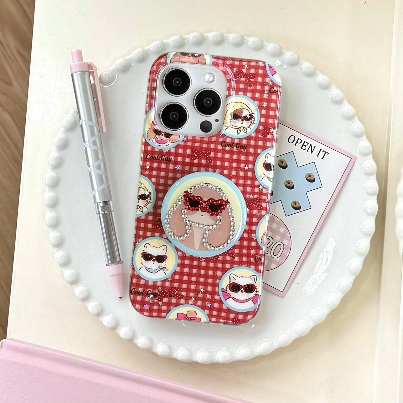 - Adorable Cartoon Puppy Design – Cute glasses and spot drill accents make your phone stand out.