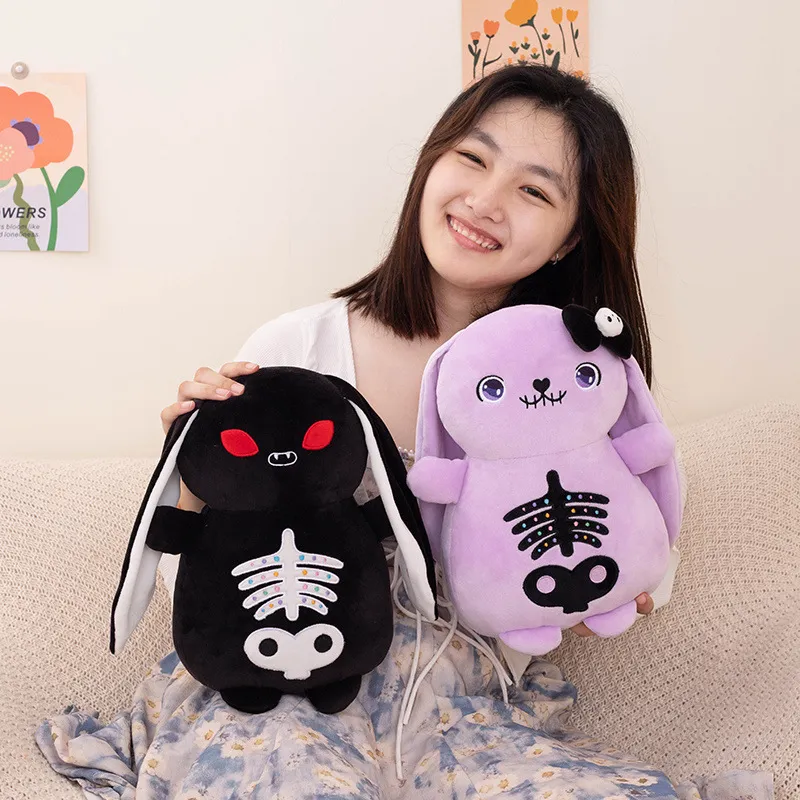 Spooky Yet Cute: The Cartoon Halloween Dark Skull Rabbit Doll offers a perfect balance of fun and eerie,
