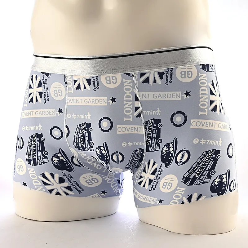 Cartoon Men's Boxer Panties Ice Silk Print Floral Mid-waist Breathable Boxers