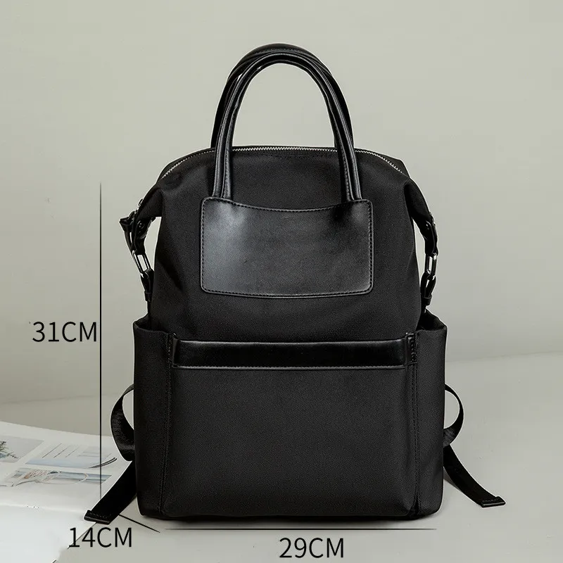 This backpack features a unique hand-hold design that allows it to double as a handbag, providing versatility and convenience for various occasions. The lightweight construction ensures that it’s comfortable to carry, while the waterproof material protects your belongings from unexpected weather conditions. The backpack is designed with multiple compartments, including a dedicated laptop sleeve, making it ideal for carrying your computer, documents, and other essentials securely.