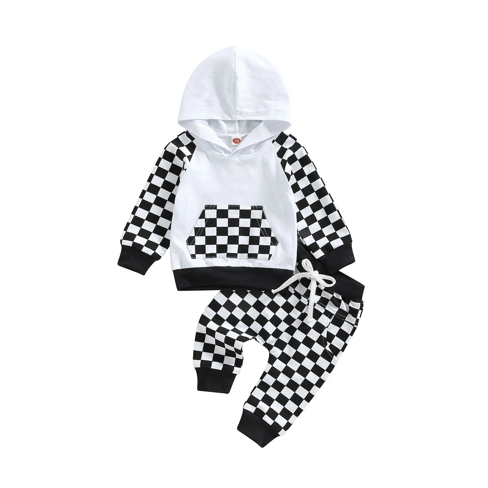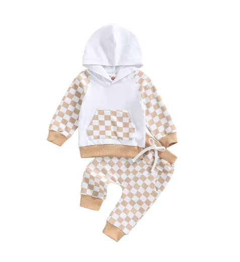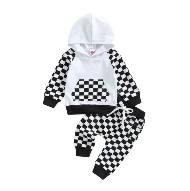 Featuring a trendy plaid patchwork design, this suit brings a touch of style to any casual look. The hoodie provides warmth and comfort, while the trousers are designed for active play, making it an ideal choice for everyday wear.
