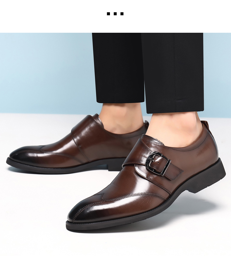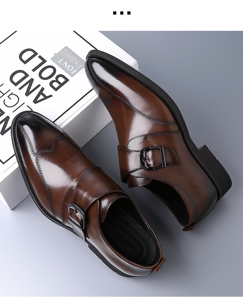 Casual Men's Buckle Color-changing Embroidered Leather Shoes