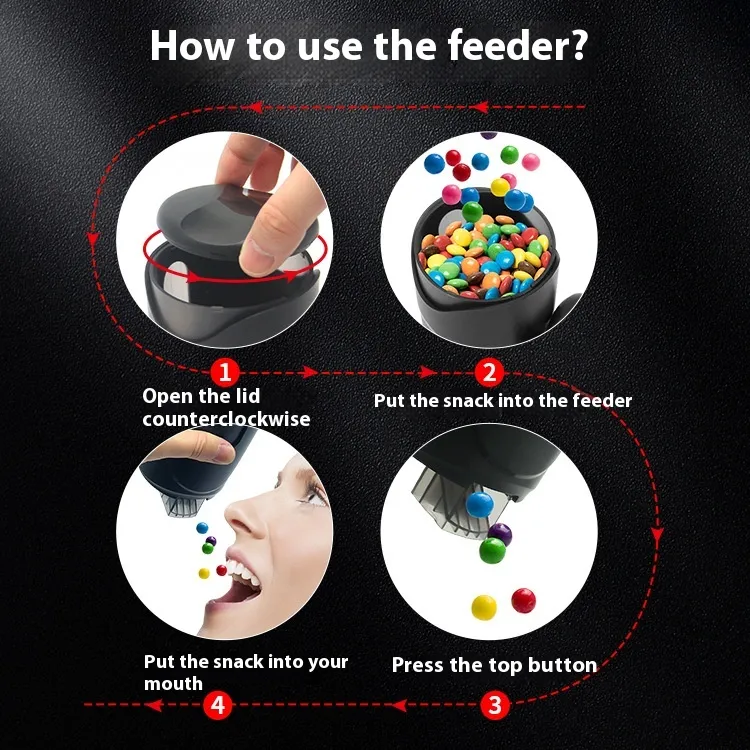 - Hold the feeder and press or twist the mechanism to release treats.