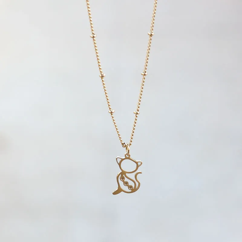 The Cat Pendant Necklace is made from high-quality titanium steel, known for its strength, lightweight nature, and tarnish-resistant properties.