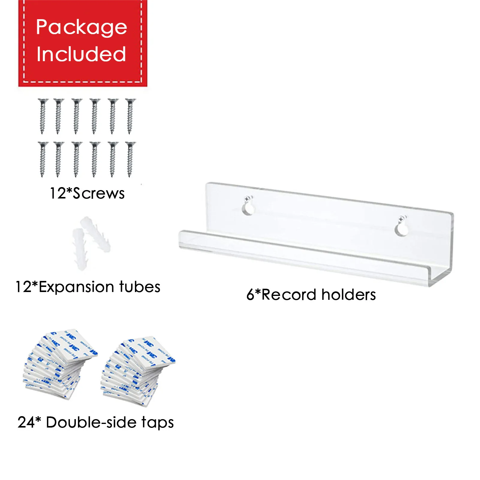 Packaging list: screws, expansion tube, 3m foam double-sided adhesive, acrylic bracket