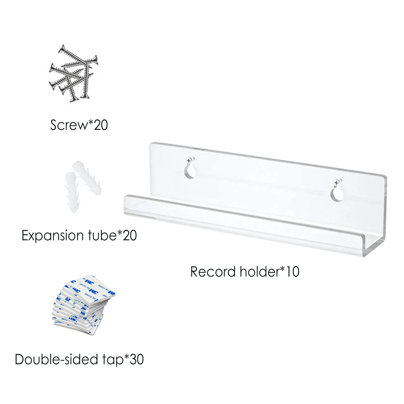 Packaging list: screws, expansion tube, 3m foam double-sided adhesive, acrylic bracket