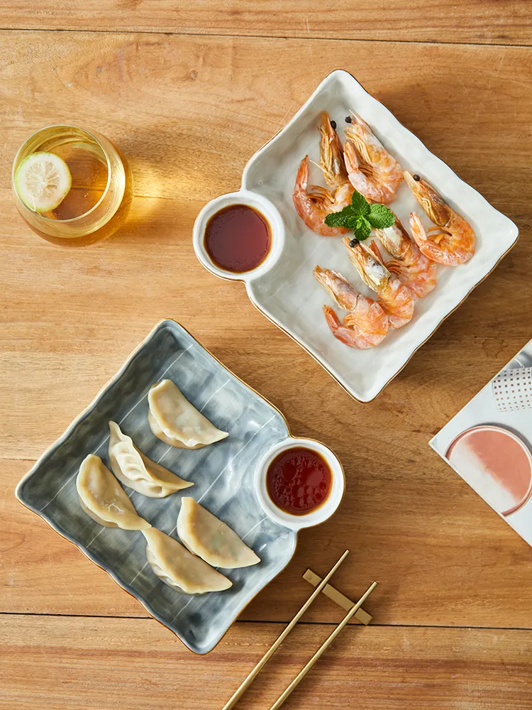 Ceramic Dumpling Tray Vinegar Dish Household Split Plate