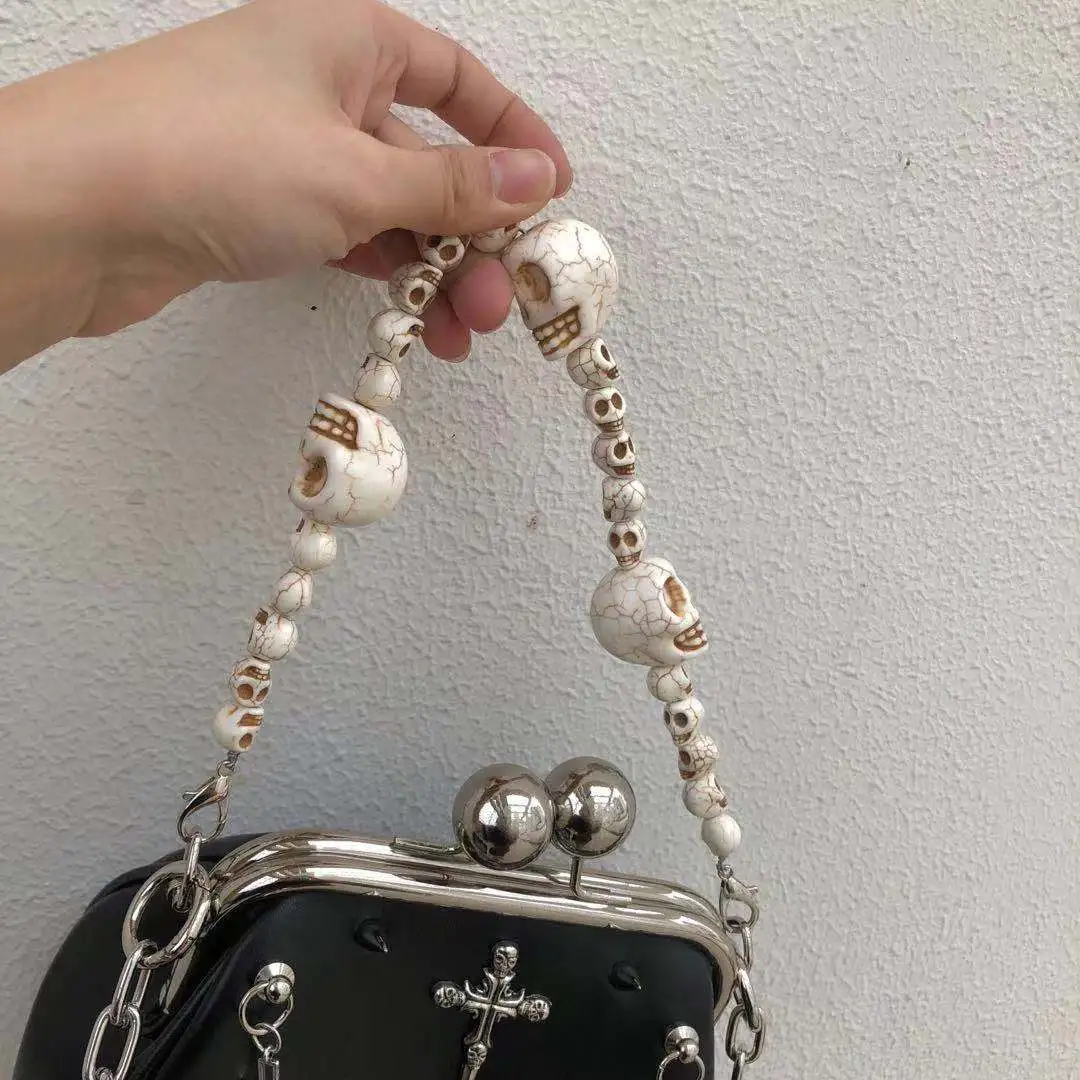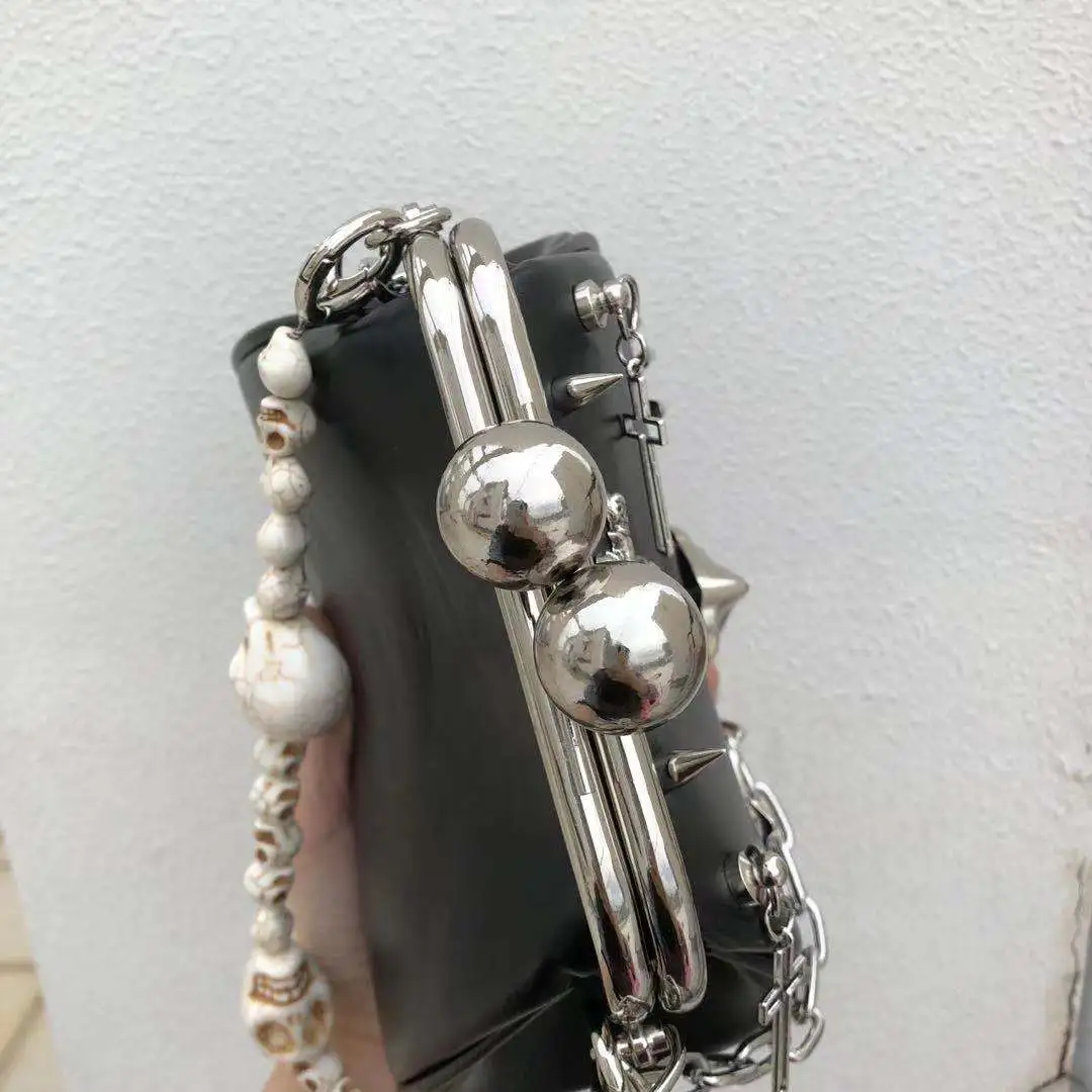 The edgy chain detailing and metallic accents make this bag a bold accessory that complements any punk-inspired or alternative outfit.