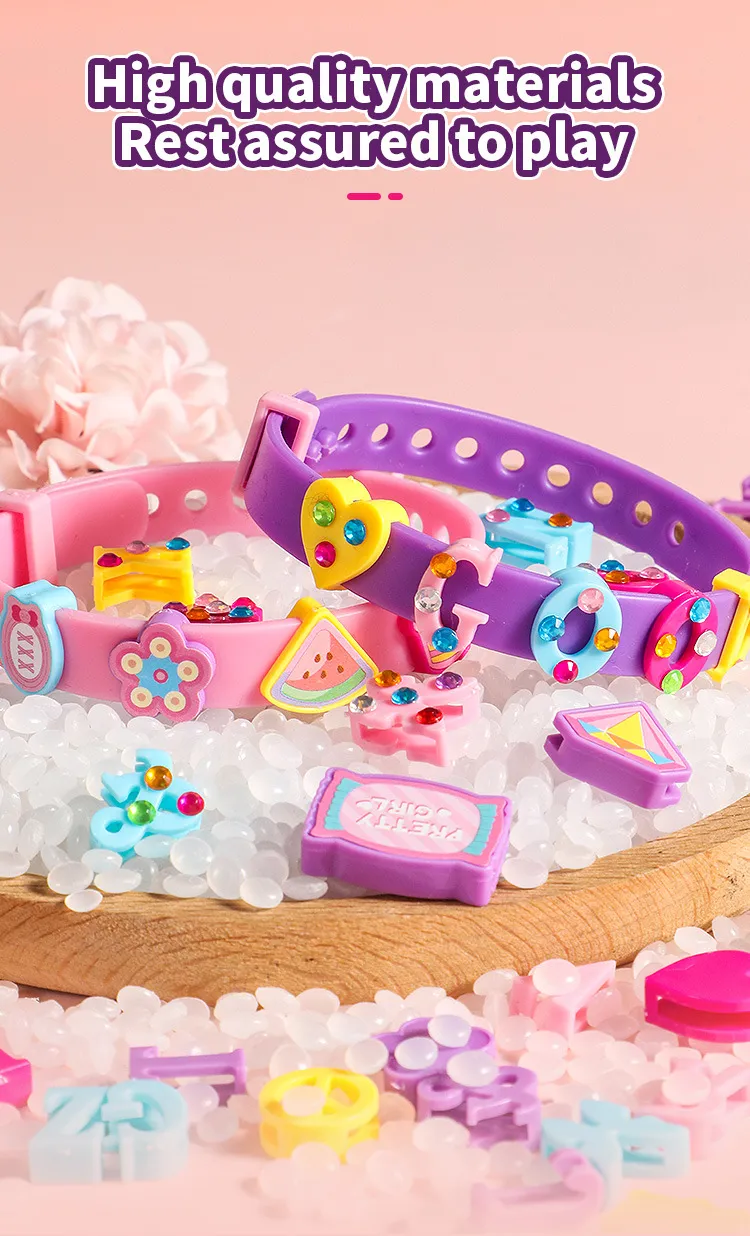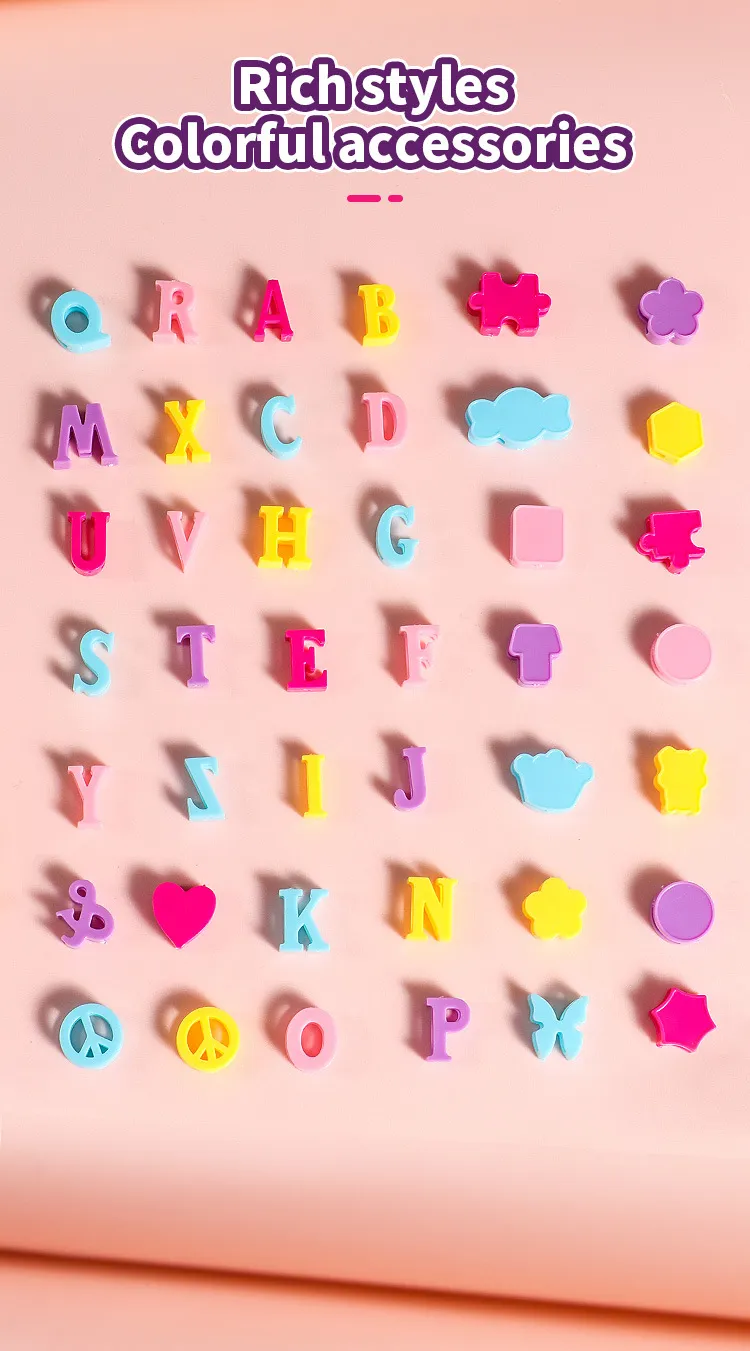 alphabet beads, and cartoon-themed charms, giving children the freedom to design their own personalized bracelets and accessories. The