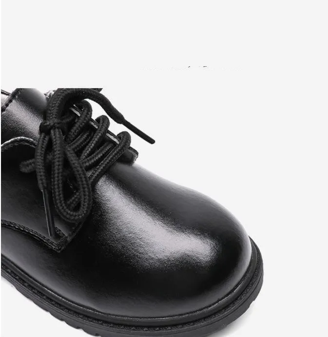 Children's Autumn New Casual Pure Black Leather Shoes