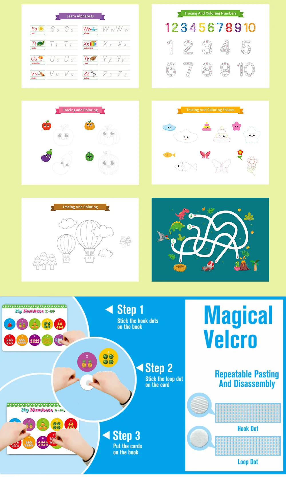This quiet book is specifically designed to help preschoolers develop essential cognitive skills. Through interactive activities, children can explore concepts like shapes, colors, sizes, and basic body structure. The educational design enhances problem-solving skills and boosts memory retention, making it a great resource for early cognitive development in a fun and approachable way.