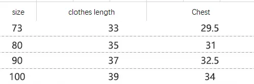 measurements. The sizes range from 6-12 months to 3-4 years.