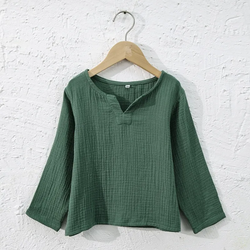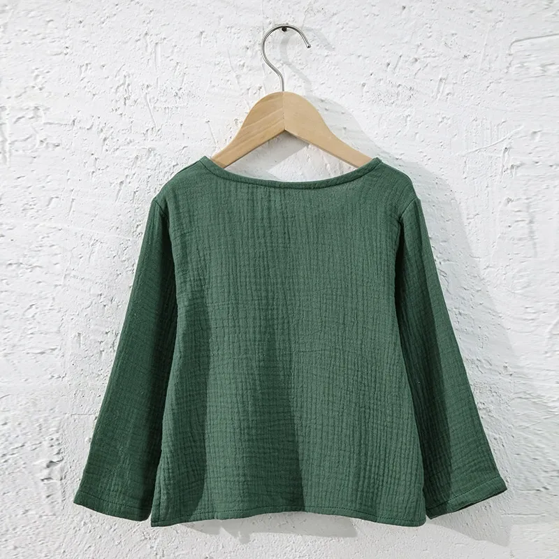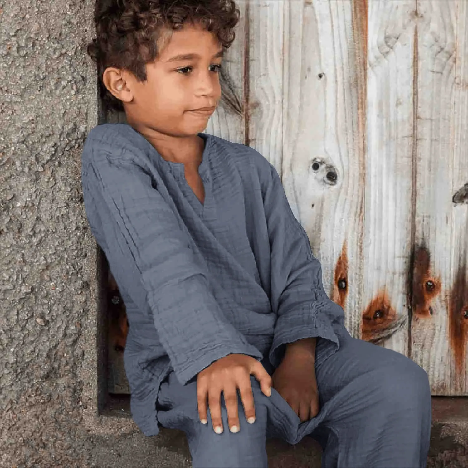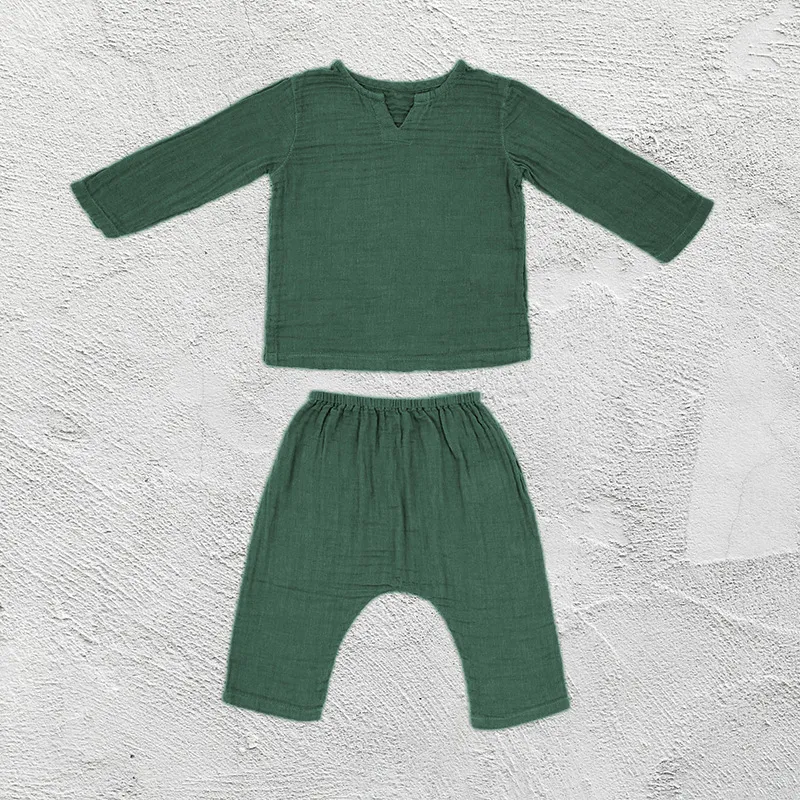 The Children's Crepe Cotton Home Wear Suit Solid Color Two-Piece Set is the perfect combination of comfort and style for your little one’s relaxed days at home. Made from soft, breathable crepe cotton fabric, this two-piece set ensures your child remains comfortable while looking effortlessly cute. The solid color design adds a touch of simplicity and elegance, making it ideal for lounging, playtime, or even casual outings.