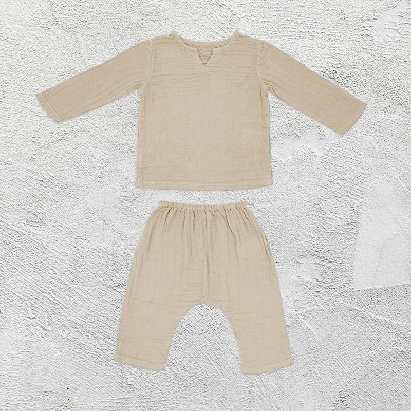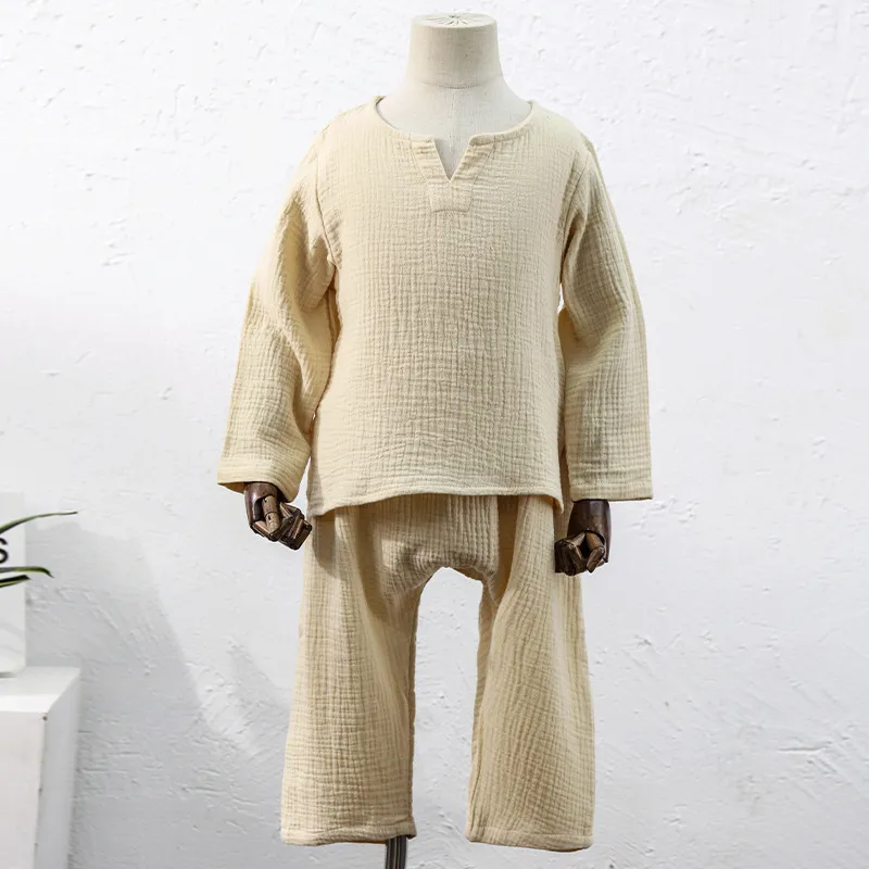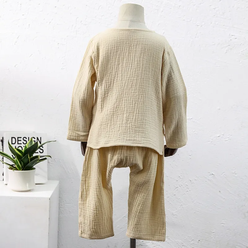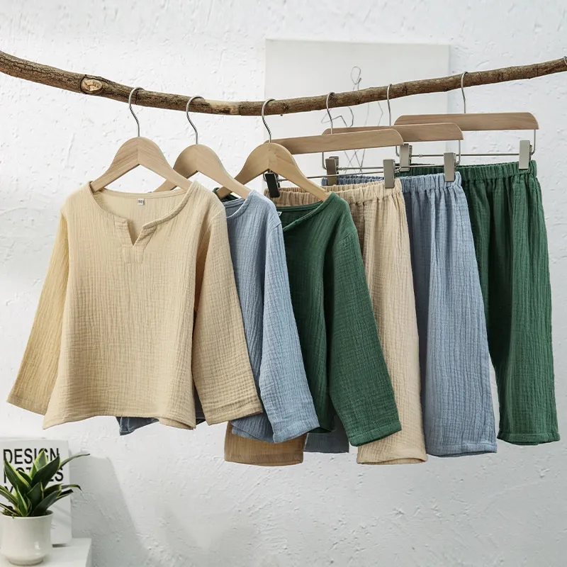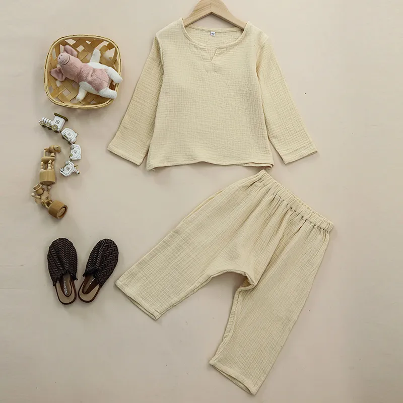 The Children's Crepe Cotton Home Wear Suit Solid Color Two-Piece Set is perfect for:
