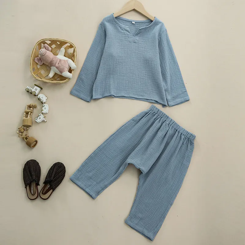 Children's Crepe Cotton Home Wear Suit Solid Color Two-Piece Set